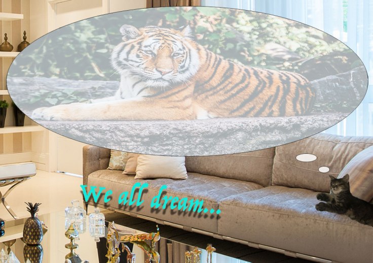 Hello, and welcome to my graphic design project. For this post I’ve decided to create a poster that illustrates the idea that cats seem to see themselves as a “top of the food chain” type of animal such as their relatives, the tigers. This topic is of course related to my topic of raising a kitten in that a new pet that acts or behaves like they are a wild tiger seems to be a difficult, and yet surprisingly common obstacle to overcome.